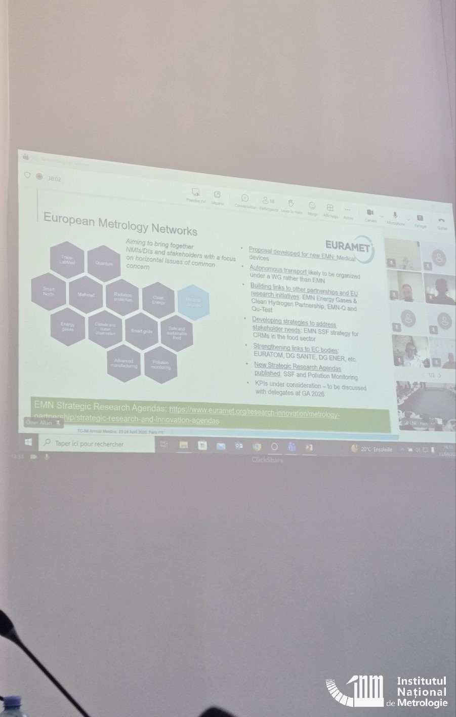 Ședința s-a desfășurat în or. Paris, Franța, unde au fost prezenți memebri ai CT-IM, EURAMET, evidențiind direcțiile strategice, proiecte aflate în desfășurare și perspectivele privind consolidarea cooperării europene în domeniul metrologiei interdisciplinare.