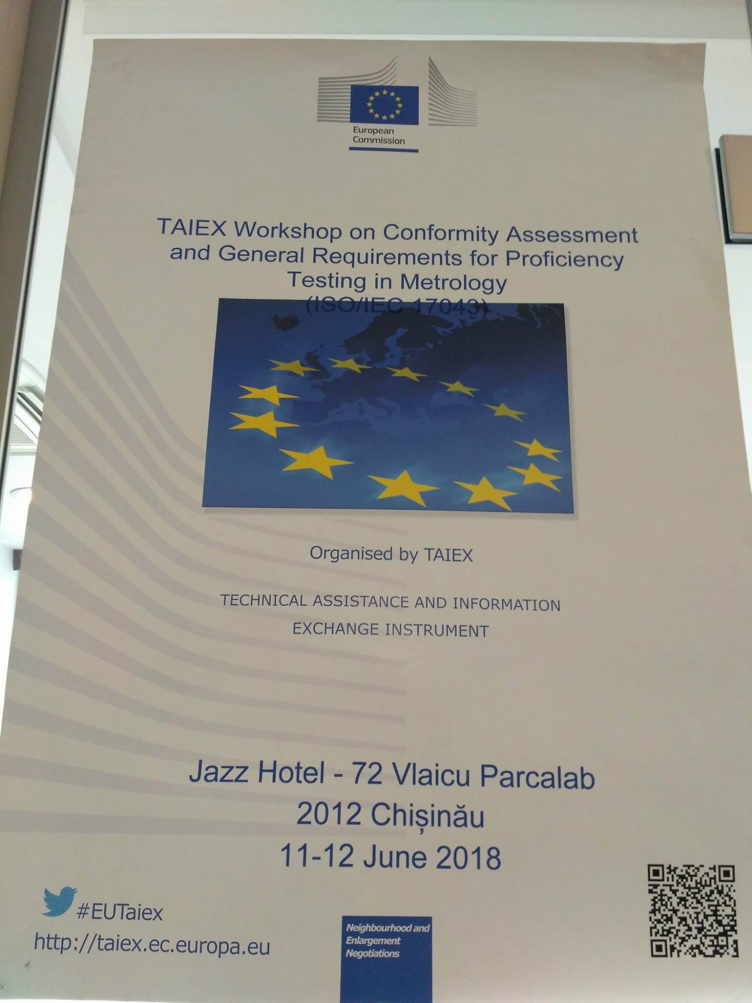Chiar în aceste momente, personalul INM participă la seminarul intitulat „Evaluarea conformității. Cerințe generale pentru încercările de competență în domeniul metrologiei”. Instruirea este organizată de INM cu suportul TAIEX - instrumentul Comisiei Europene de asistență tehnică și schimb de informații.