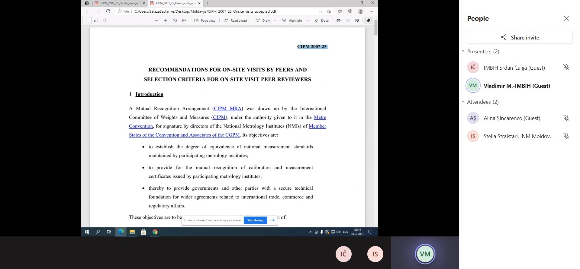 As a full member of EURAMET, INM is periodically passing the peer review procedure, conducted by experts from other EURAMET member states, in order to demonstrate the calibration and measurement capabilities, as well as the efficiency of the Quality Management System implemented.