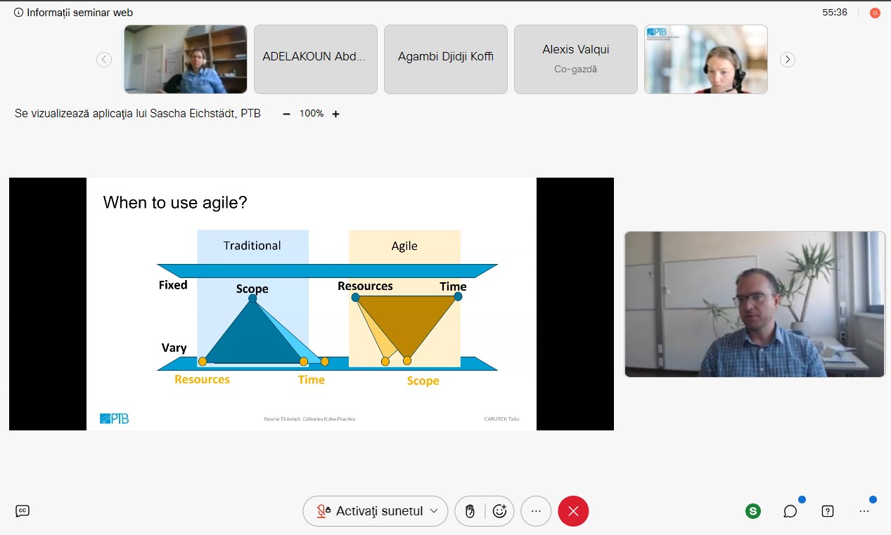În acest context, Institutul Național de Metrologie (INM) a participat (online) la cea de-a noua discuție CABUREK, cu tematica „Managementul agil al proiectelor – o abordare pentru gestionarea cerințelor complexe și incertitudinilor”